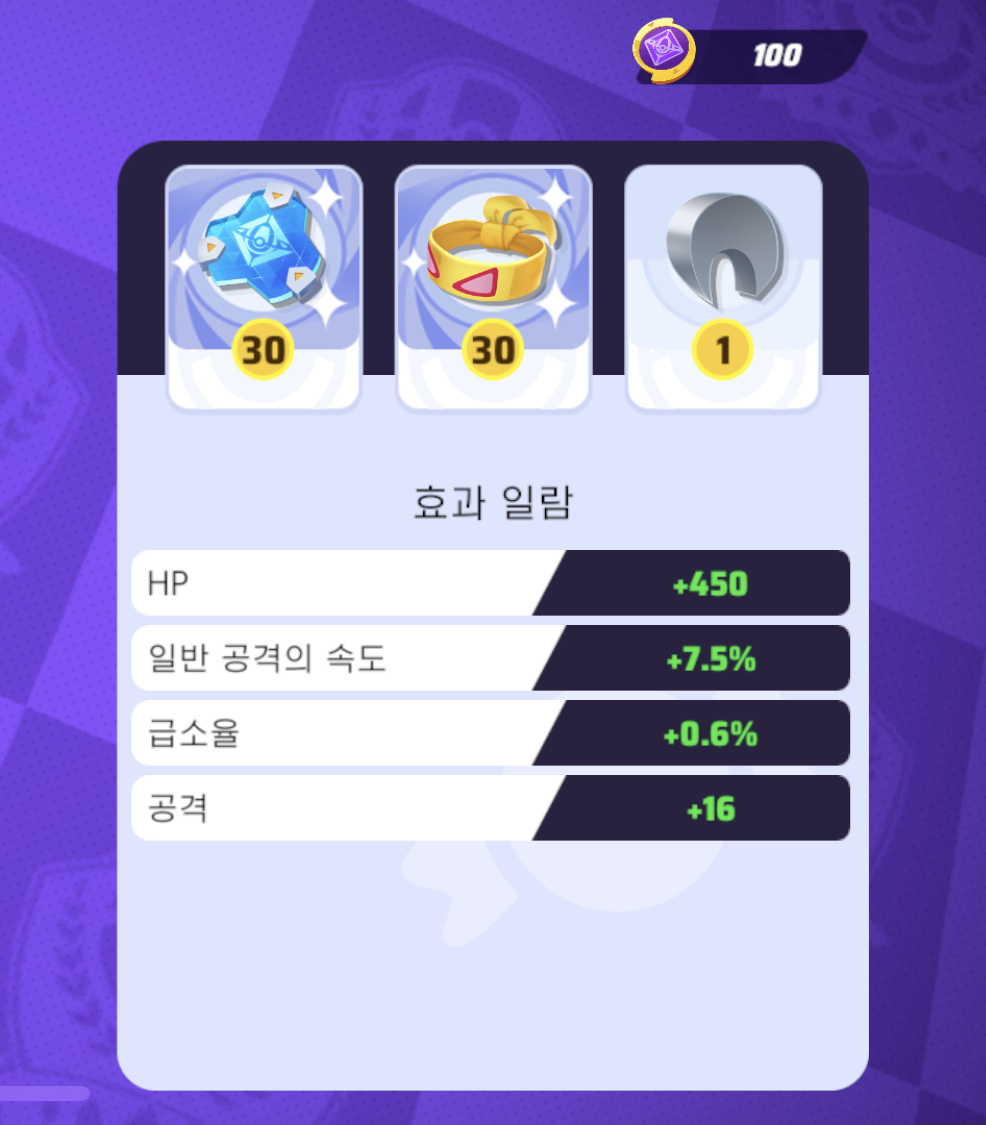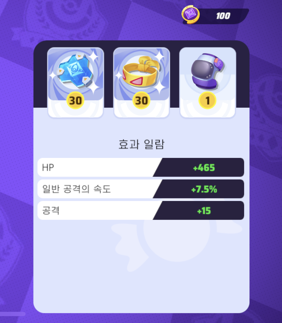 골 점수를 많이 얻고 싶다면 힘의 머리띠, 골 서포터, 도움 배리어를 추천드립니다.