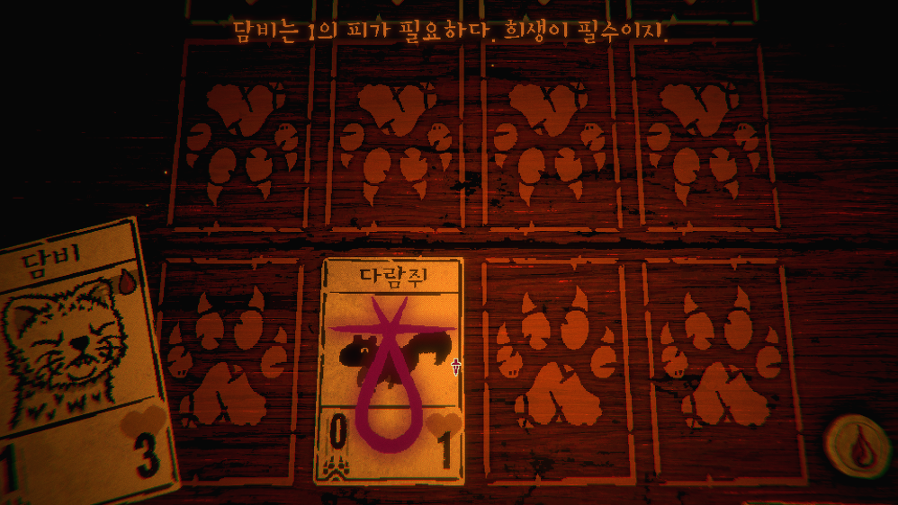 피가 1방울인 카드는 카드 1장의 희생이 필요하다는 의미이고,